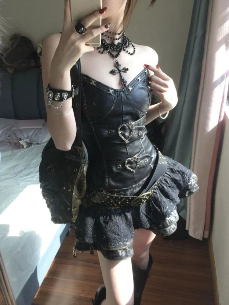 Gothic Off Shoulder Skinny Ruffle Short Skirt Set