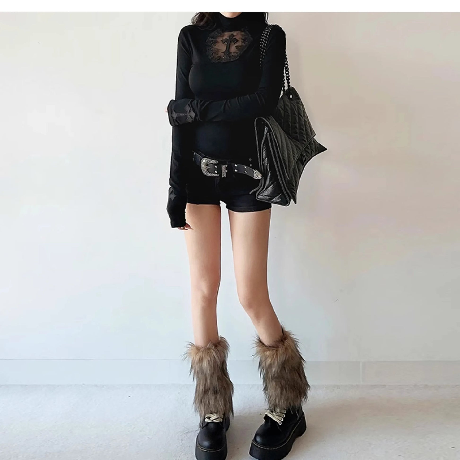 Stretch Black Gothic Cross Tops