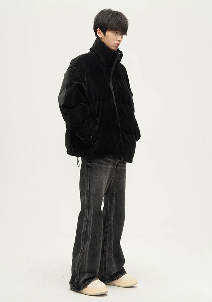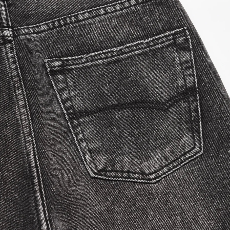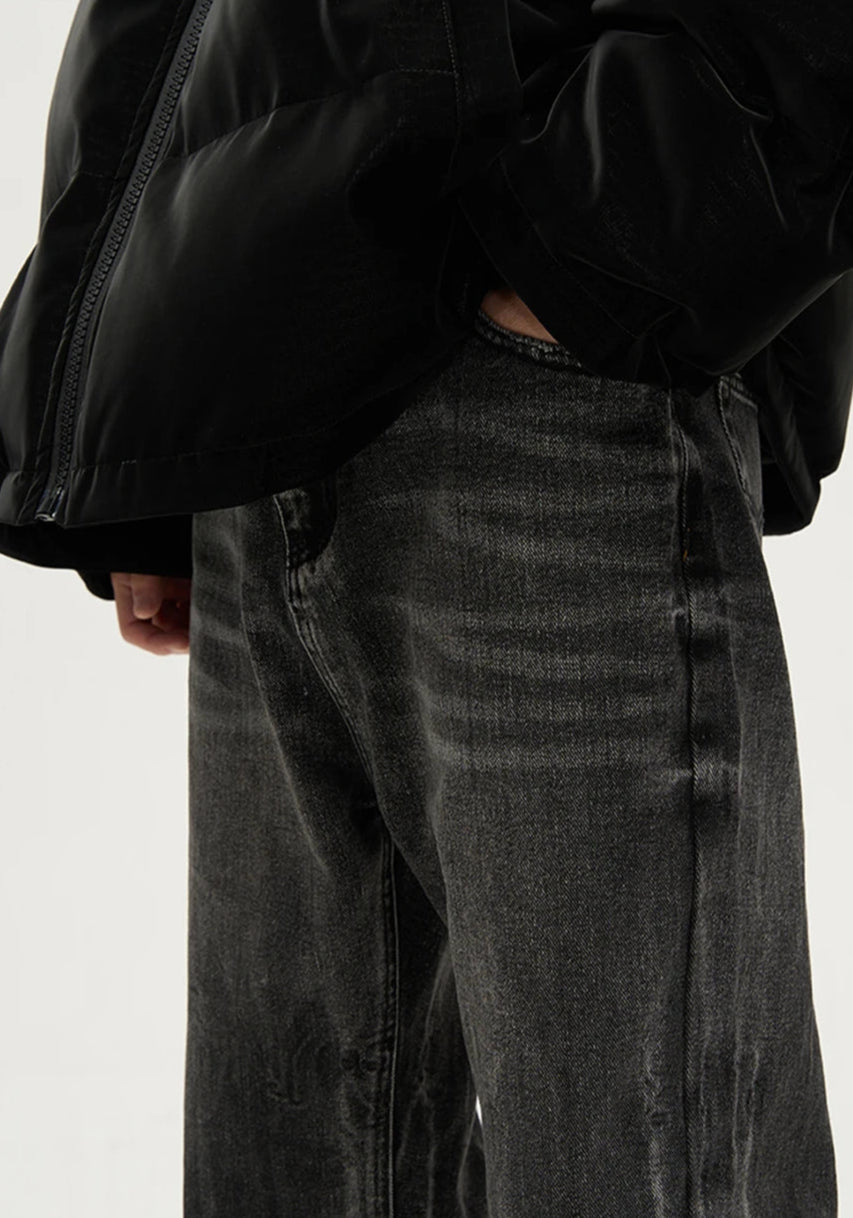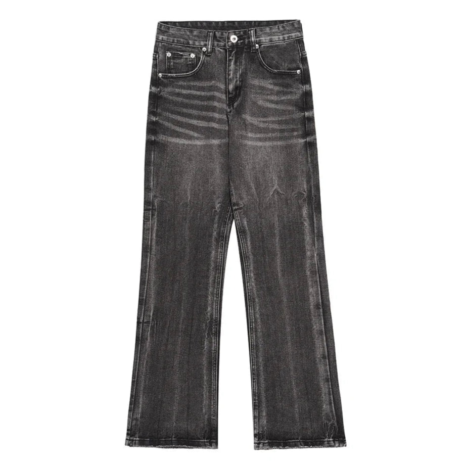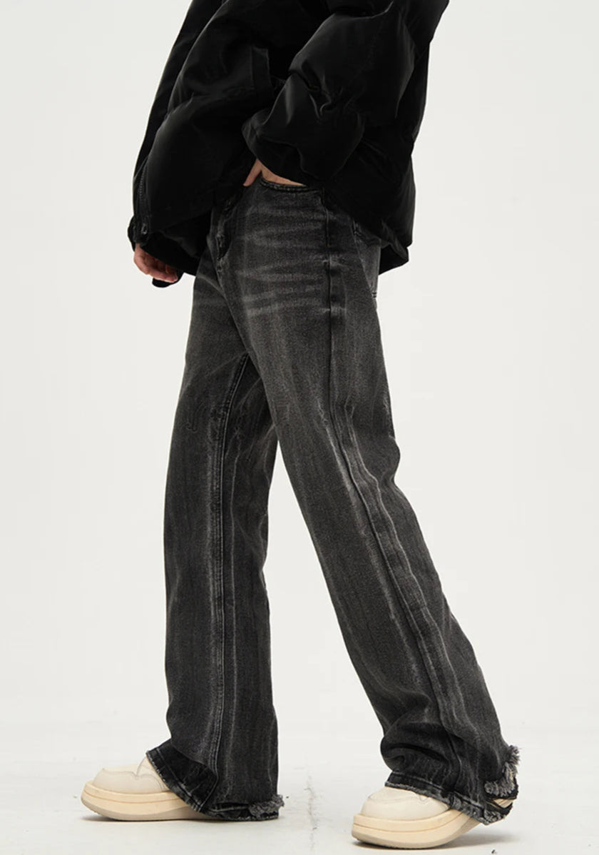 裾口のダメージ、ミディアムウォッシュ、フレアパンツ
