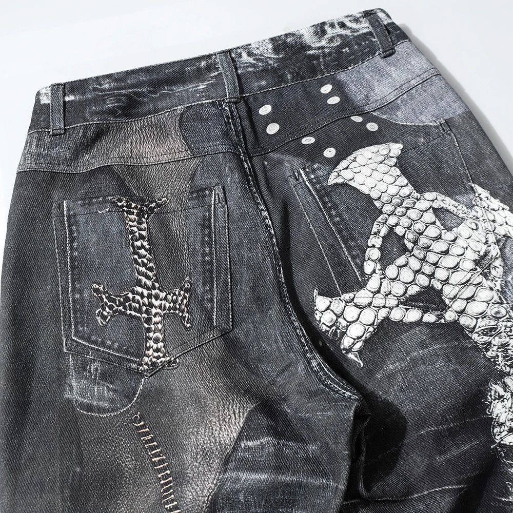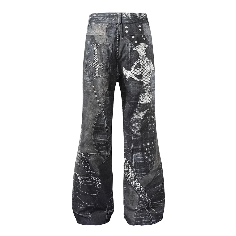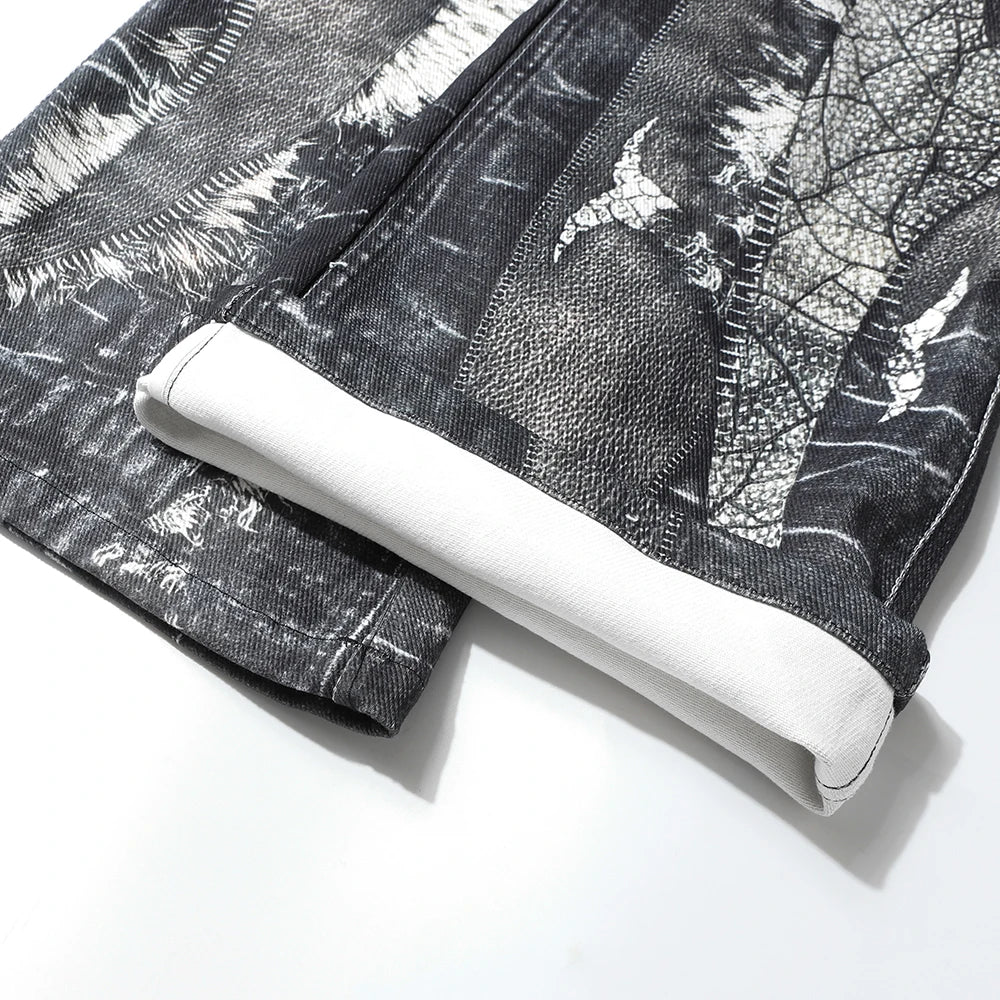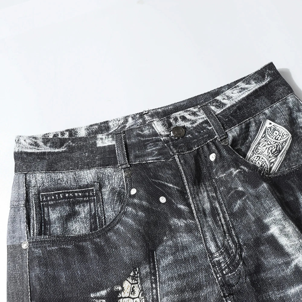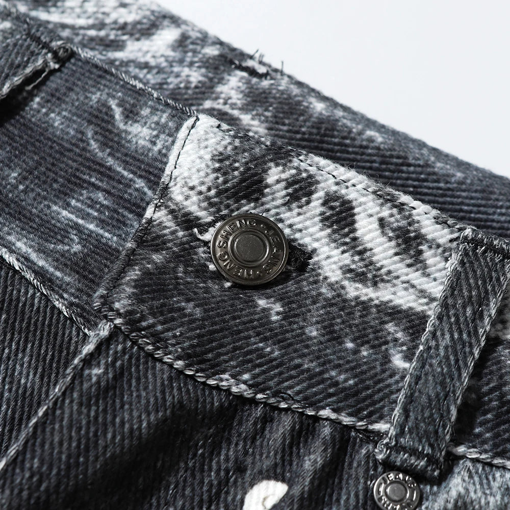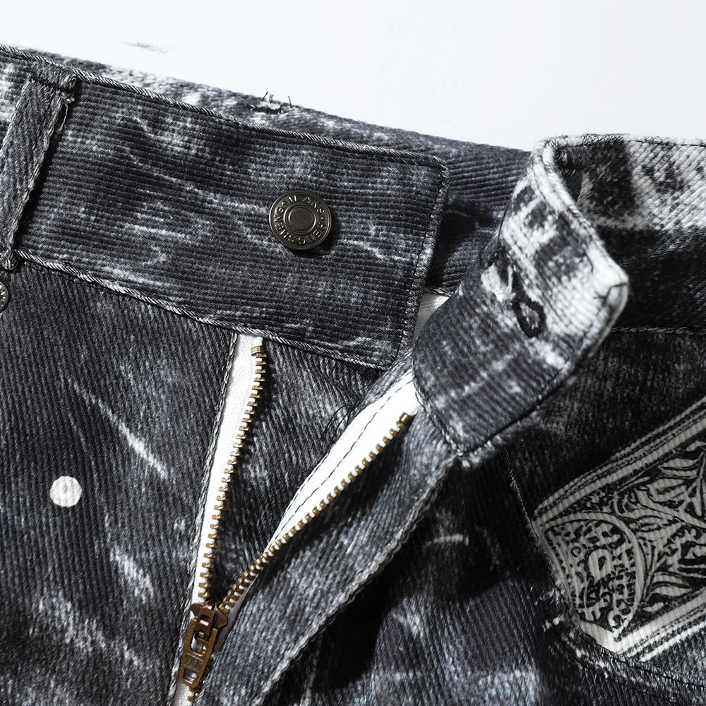 ポケット x 4、ルーズフィット、アブストラクトパターン