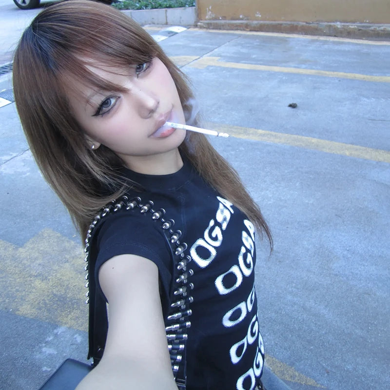 Y2k Letter Print T-shirt