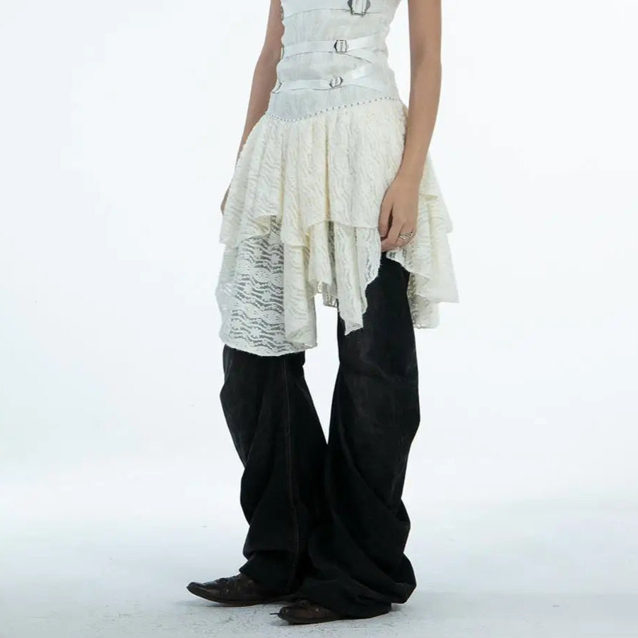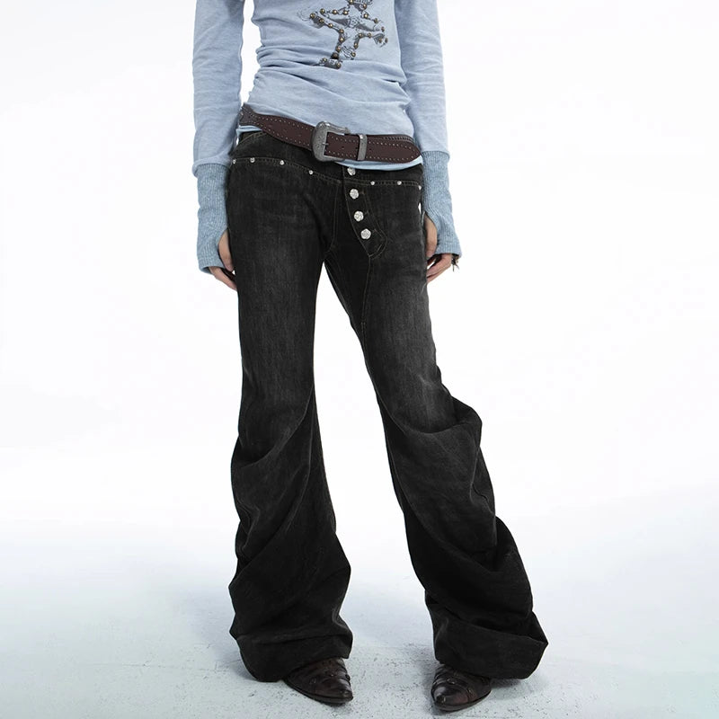 フロントボタン x7、ベルトループ x 5、ワイドレッグ