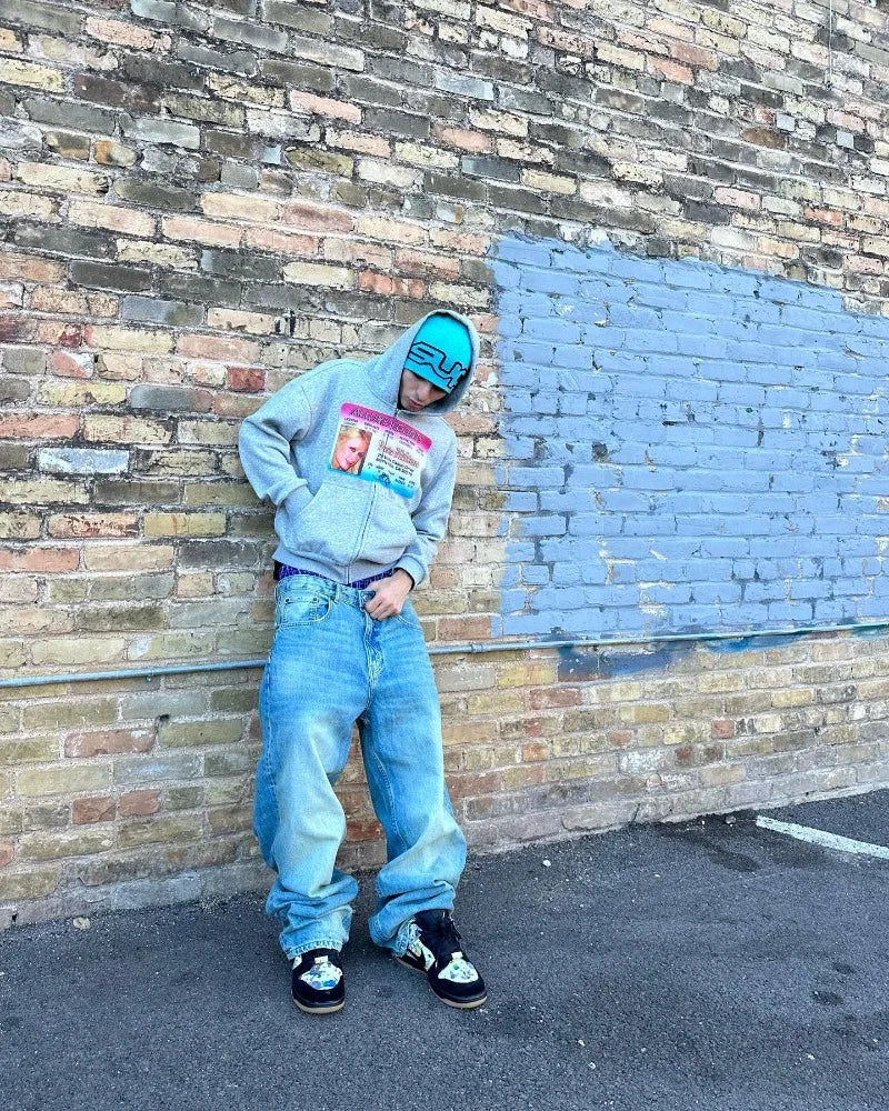 Fake ID Print Zipper Hoodie