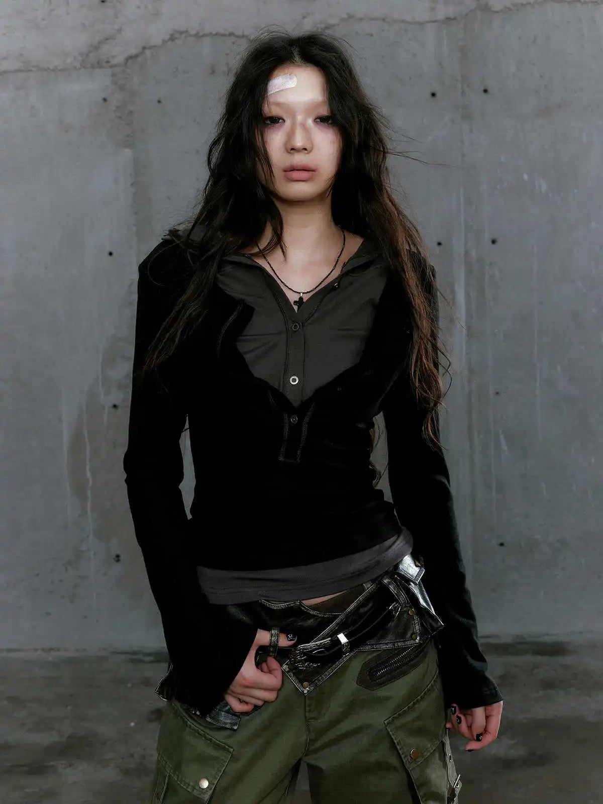 ayane Fake Two Pieces Crop Hooded Top
