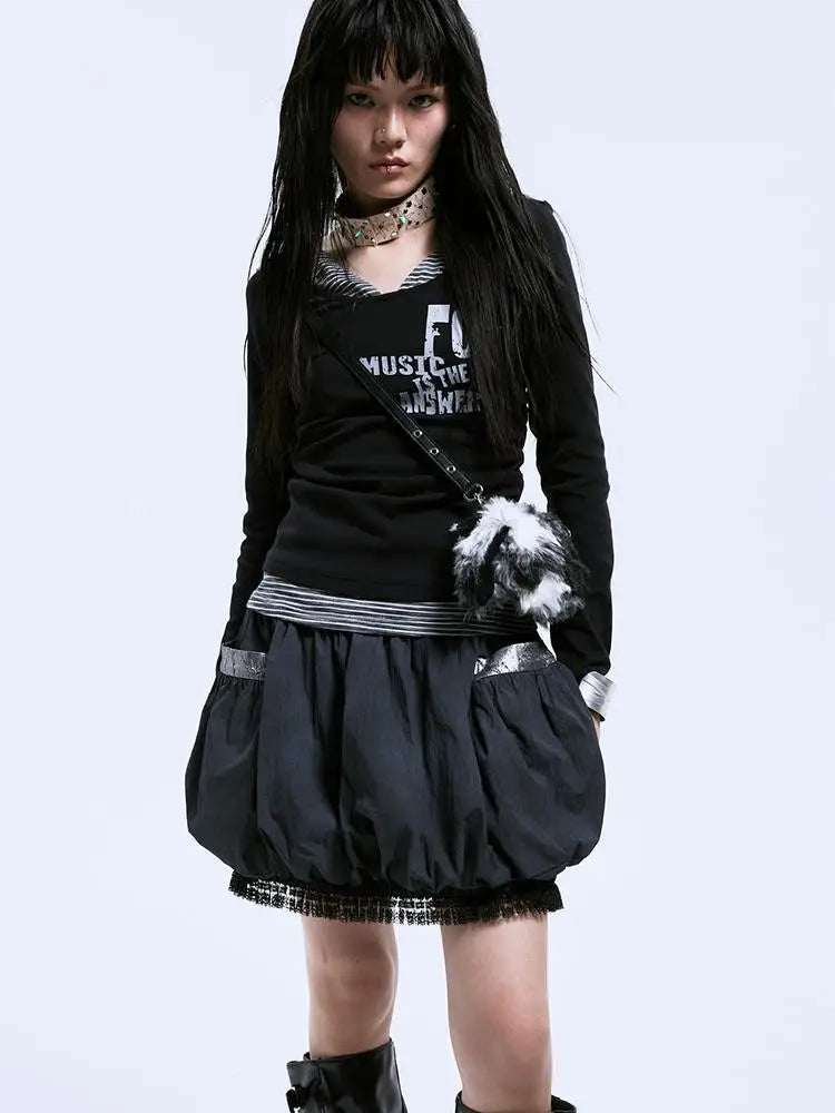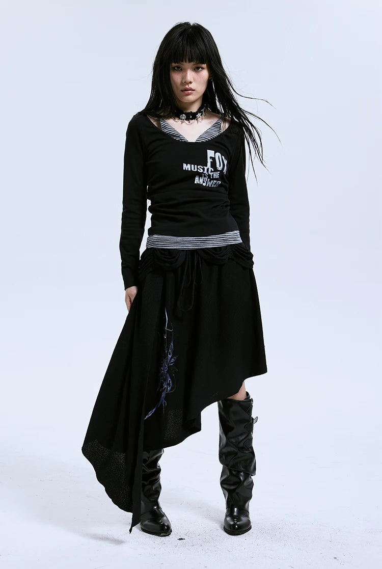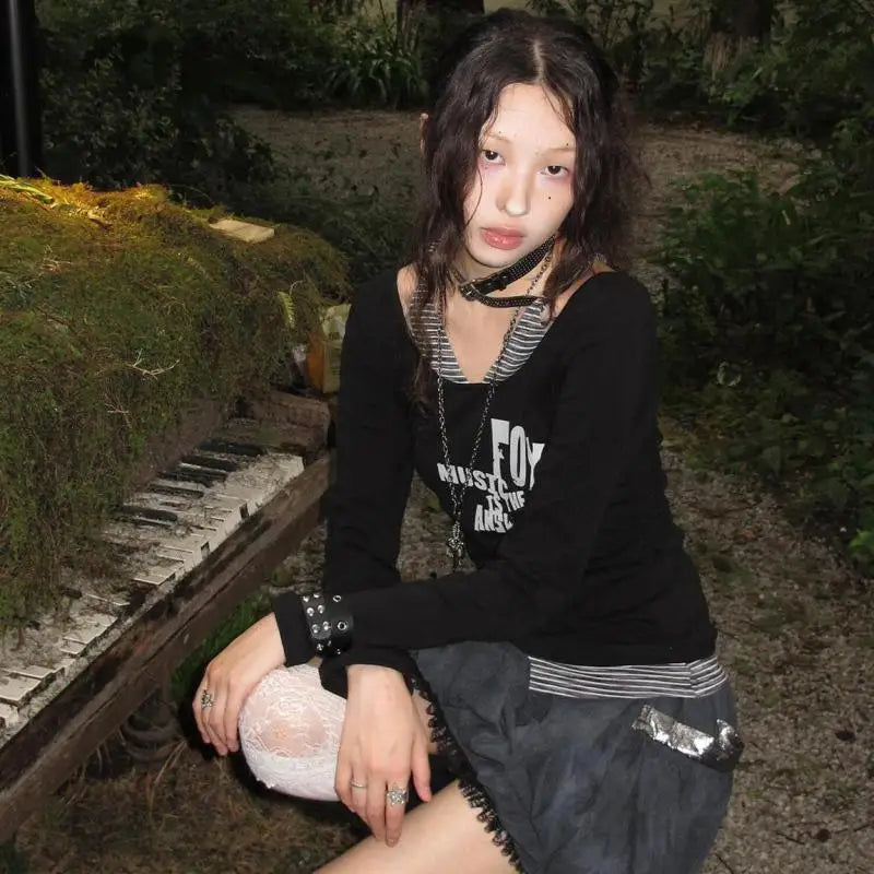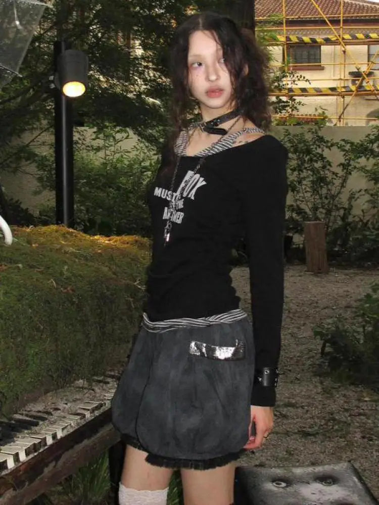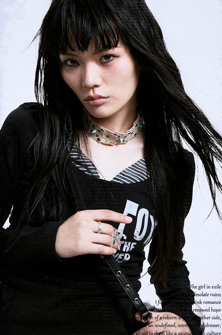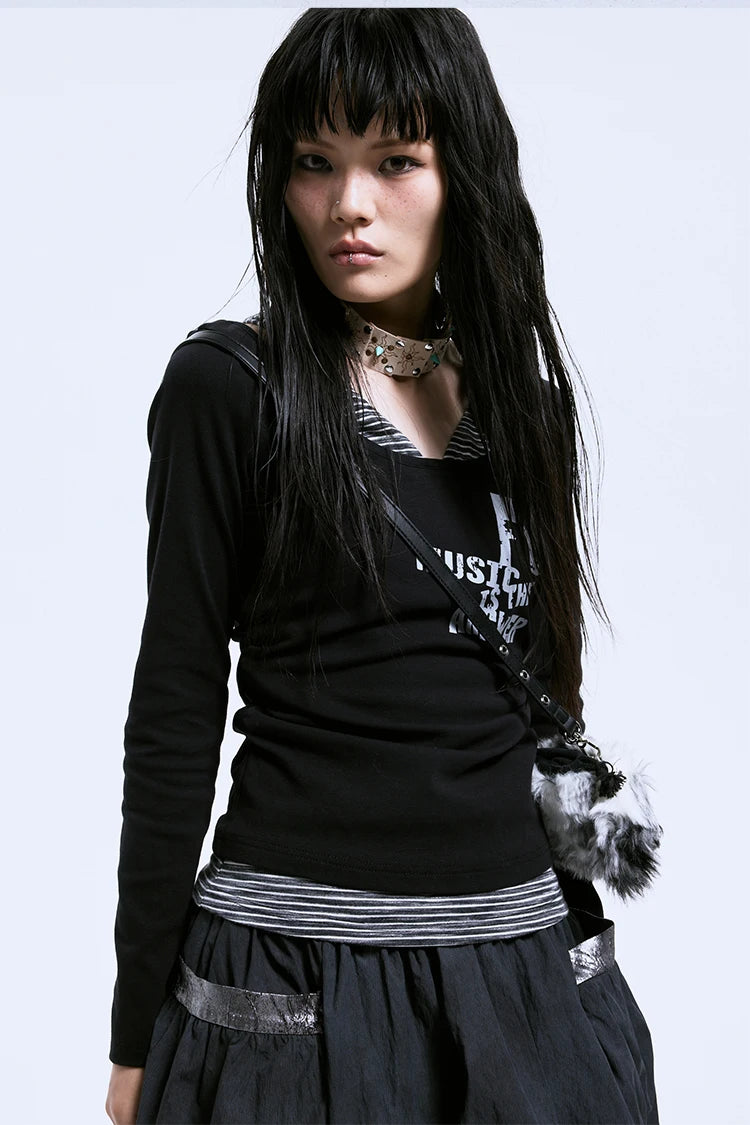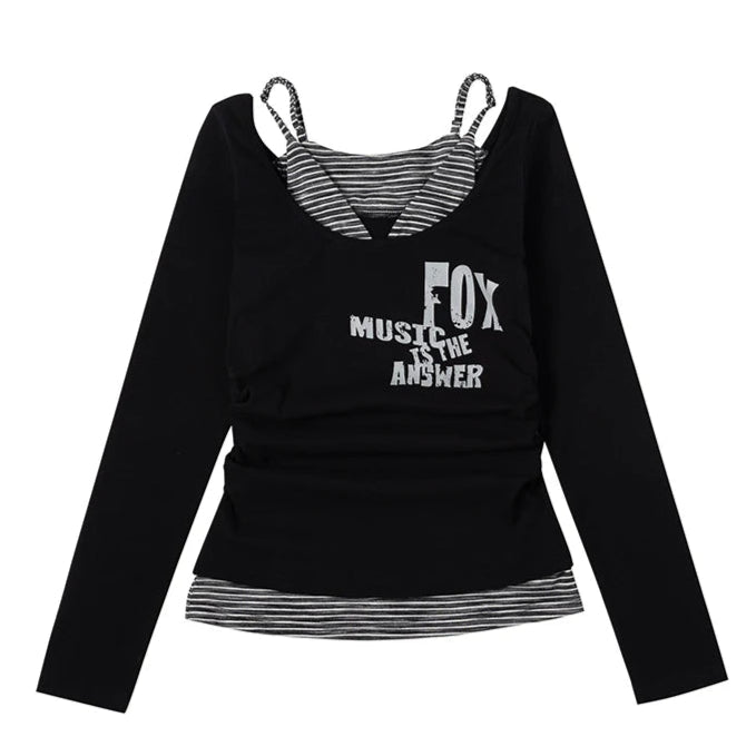 フェイク2ピーススリーブ、レタープリント、パッチワーク、フィットタイプ: スリム
